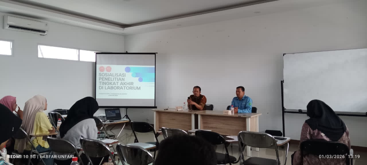Program Studi Farmasi Universitas Al-Ghifari (UNFARI) bekerja sama dengan Unit Pelaksana Teknis (UPT) Laboratorium Fakultas Matematika dan Ilmu Pengetahuan Alam (FMIPA) melaksanakan kegiatan Sosialisasi Penelitian di Laboratorium bagi mahasiswa tingkat akhir. Kegiatan ini dilaksanakan sebagai agenda rutin dalam rangka mendukung kualitas dan kelancaran pelaksanaan penelitian mahasiswa.